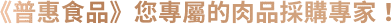 普惠食品企業(yè)股份有限公司於1985年成立至今,致力於提供臺(tái)灣食品業(yè)者來(lái)自於全球的優(yōu)質(zhì)牛肉、豬肉、雞肉、火雞肉品與海鮮,肉品批發(fā)與肉品加工分切服務(wù),最多元最專(zhuān)業(yè)的肉品進(jìn)口商與批發(fā)商。