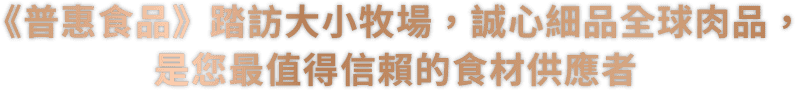 我們不只為了品質(zhì)不畏困難的走訪全球大小農(nóng)牧場(chǎng)!我們更擁有著強(qiáng)大的貿(mào)易團(tuán)隊(duì)提供您最專(zhuān)業(yè)的國(guó)際肉品價(jià)格走勢(shì)的分析讓您不必再畏懼市場(chǎng)的起伏不定!而我們的專(zhuān)業(yè)與35年來(lái)對(duì)品質(zhì)的堅(jiān)持,更使我們成為國(guó)際肉品大廠指定的代理商。